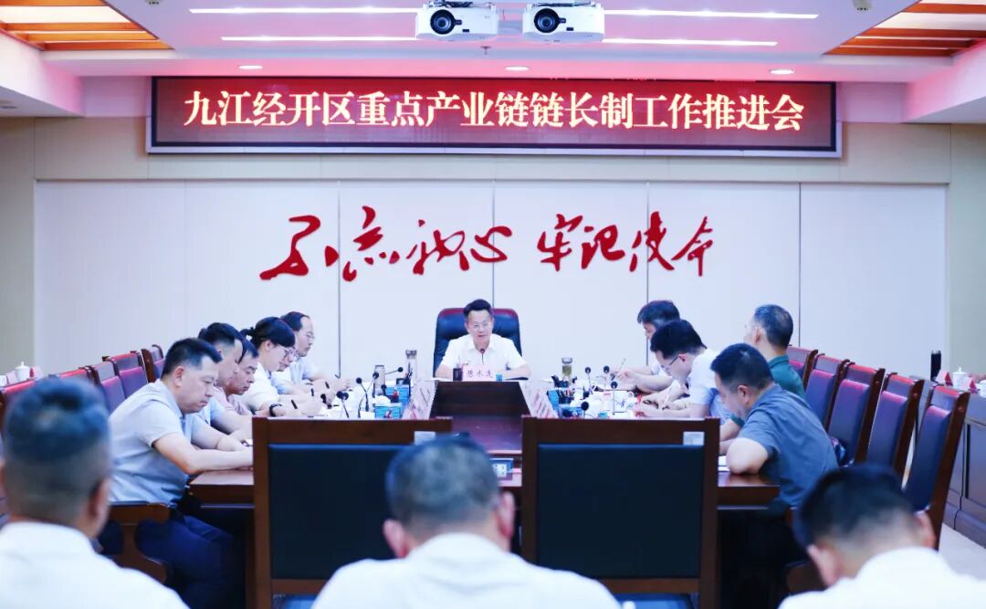 7月31日晚,市政府副市长、区党工委书记陈水连主持召开全区重点产业链链长制工作推进会。他强调,要深入贯彻习近平总书记关于建设现代化产业体系的重要论述,围绕做大做强主导产业,进一步统一思想、凝聚共识,以链长制为抓手,加快推动九江经开区产业转型升级和集群集聚发展。区党工委副书记、管委会主任戴炜作相关工作部署,区领导杨龙兴、梅勇、骆凯波、卢燕、陈冬梅、徐松茂、钟华星、刘强、罗国民、刘宏以及有关单位负责人参加会议。