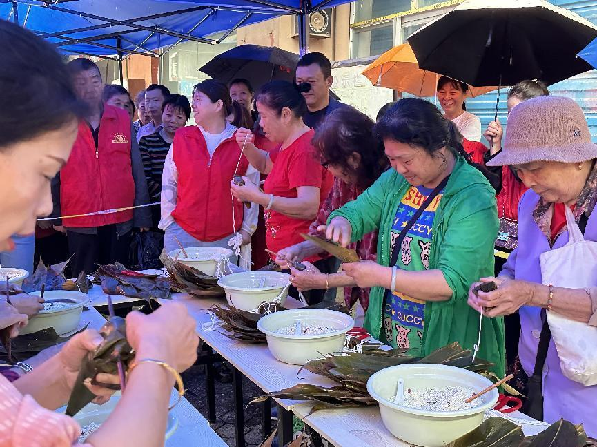 端午近,粽香飘。日前,滨兴街道向湖社区联合小区物业、退役军人志愿者开展“端午粽有你,幸福邻里情”包粽子大赛。
