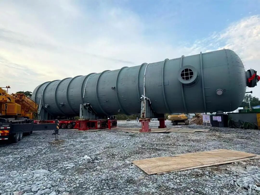 项目团队通过高效的政企联动,与交警、电力、铁路及路政等部门紧密配合,采取夜间分段护送、弹性交通管制、高压电缆临时抬升、开辟快速路专用通行窗口等一系列精准措施,构建起覆盖全程的运输保障体系,最终安全高效完成了全长23公里、横穿市区的复杂运输任务。该塔器设备后续转入组对制造阶段。