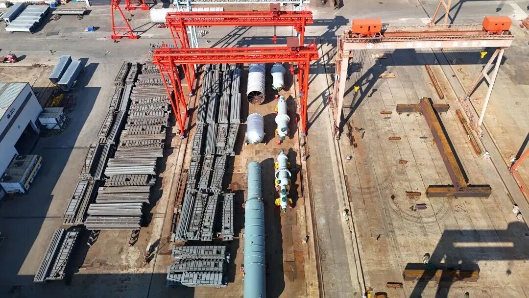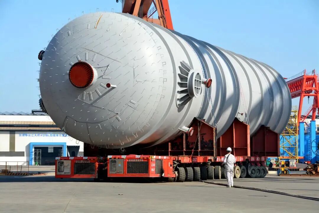 本批次大件设备运输自2025年12月31日启动,包括歧化汽提塔、歧化反应器、歧化进出料换热器和重整油分离塔4台设备。由于该批设备制造来源分散、交货期衔接复杂,且码头作业窗口期有限,运输协调面临较大挑战。为确保该批关键设备安全、准时到位,政企双方周密策划、科学部署,通过全程动态跟踪与精细调度,克服多项困难,保障了设备安全准时到岸。