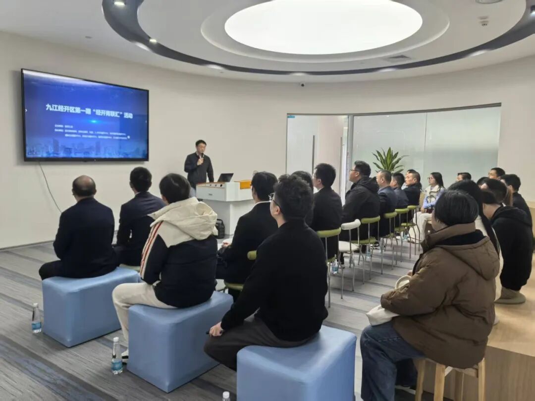 活动伊始,与会人员共同参观了区政务服务中心,深入了解了我区产业发展规划和营商环境政策。分享环节,区团工委相关工作人员结合党的二十届四中全会精神,鼓励青年企业家主动锚定区域发展大局,将企业成长与区域发展同频共振,以青春担当把握时代机遇,以团结协作凝聚发展合力;TCL空调器(九江)有限公司总经理沈督结合企业成长轨迹与管理心得作了主题分享,为提升参会者的经营管理能力提供了宝贵借鉴;区人民法院赛城湖人民法庭工作人员“以案释法”,拆解法律风险点并给出防范建议,为企业稳健发展筑牢法律保障;九江银行开发区支行工作人员详细介绍了特色金融产品。