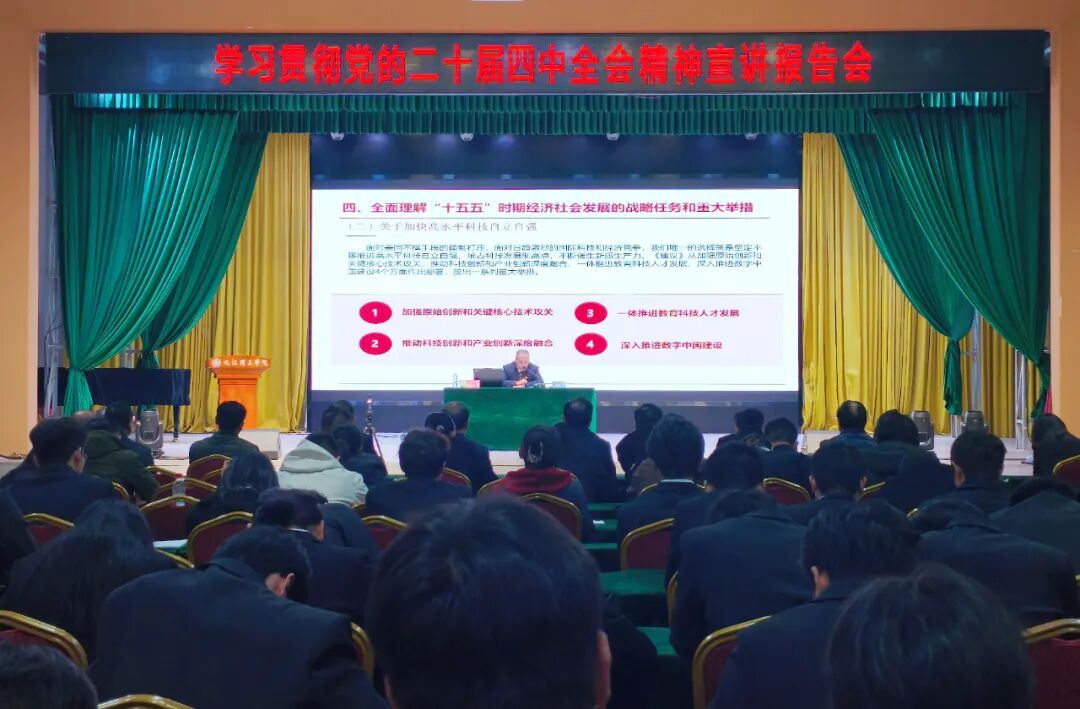 11月20日,学习贯彻党的二十届四中全会精神市委宣讲团报告会在九江理工职业学院宣讲。市委宣讲团成员、九江市社科联党组书记张伟作宣讲报告。