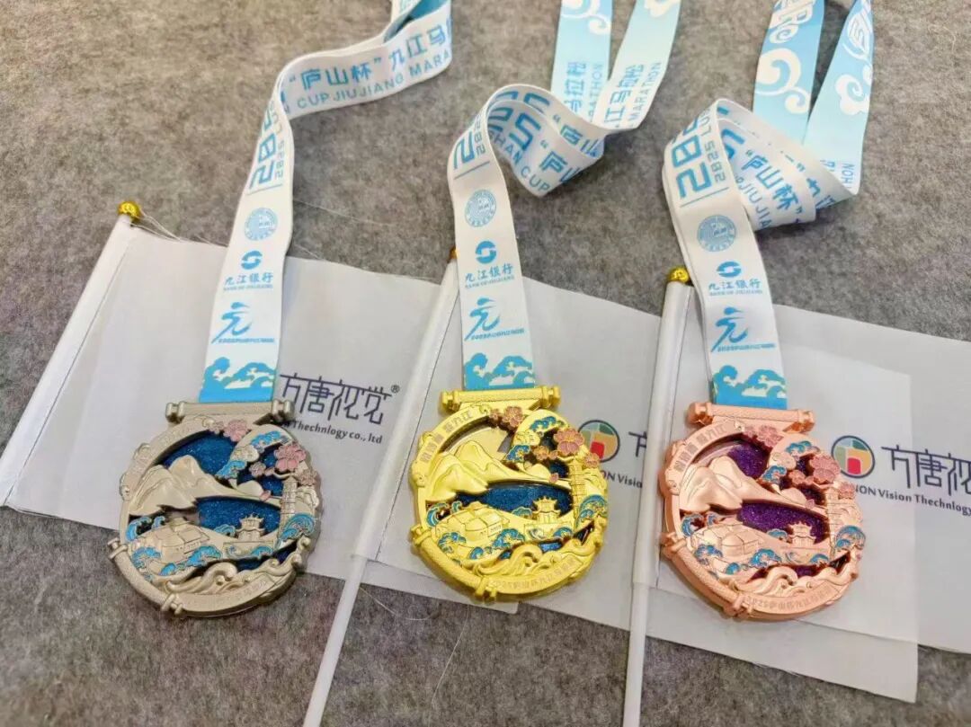 一枚奖牌,半城山水!近日,2025九江马拉松圆满落幕。本次马拉松赛道,精心串联起九派诗廊、大中路、浔阳楼、琵琶亭、长江国家文化公园(九江城区段)等多个文化地标,将九江的人文胜景与自然景观深度交织,堪称一场“移步换景”的诗意之旅,而由我区企业江西方唐视觉科技有限公司设计的马拉松奖牌,将九江独特的地域文化与马拉松精神完美融合,以匠心设计悄然讲述着千年浔城的诗画故事。