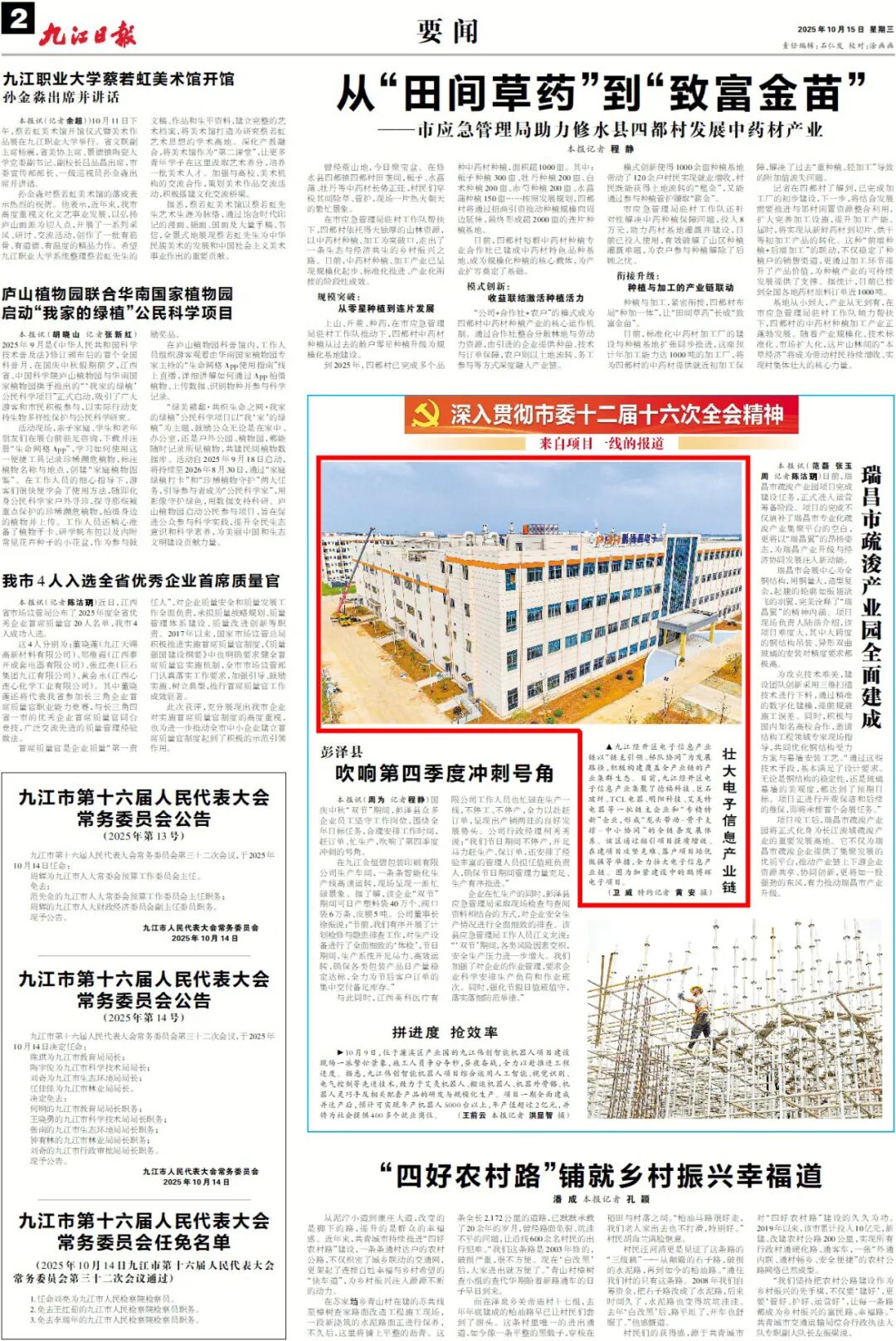 九江经开区电子信息产业链以“链主引领、梯队协同”为发展路径,积极构建覆盖全产业链的产业集群生态。目前,九江经开区电子信息产业集聚了德福科技、巨石玻纤、TCL电器、明阳科技、艾美特电器等一批链主企业和“专精特新”企业,形成了“龙头带动-骨干支撑-中小协同”的全链条发展体系。我区通过招引项目提质增效、在建项目攻坚克难、落户项目培优做强等举措,全力壮大电子信息产业链。图为加紧建设中的鹏博辉电子项目。