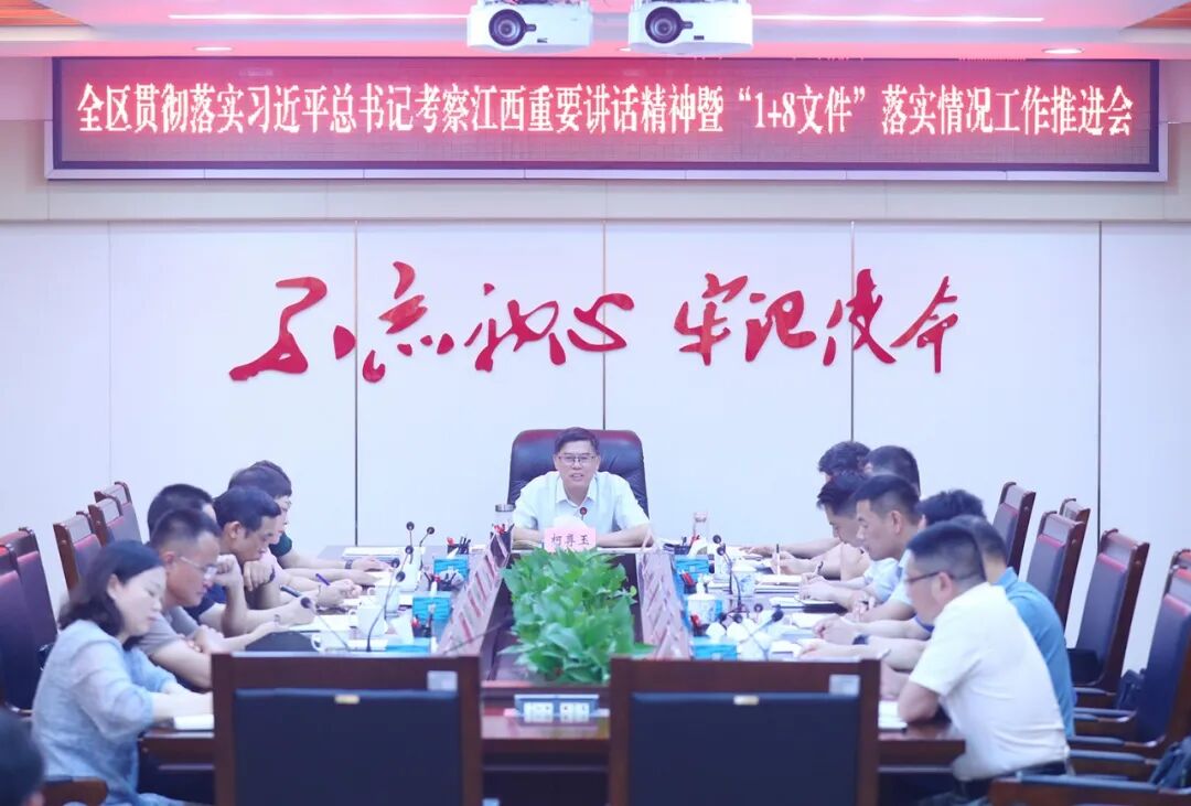 8月15日,区党工委书记柯尊玉主持召开我区贯彻落实习近平总书记考察江西重要讲话精神暨“1+8文件”落实情况工作推进会。他强调,要深入贯彻落实党的二十届三中全会精神和习近平总书记考察江西重要讲话精神,聚焦“走在前、勇争先、善作为”的目标要求,真抓实干、担当作为,奋力谱写中国式现代化经开篇章。区领导梅勇、骆凯波出席会议。